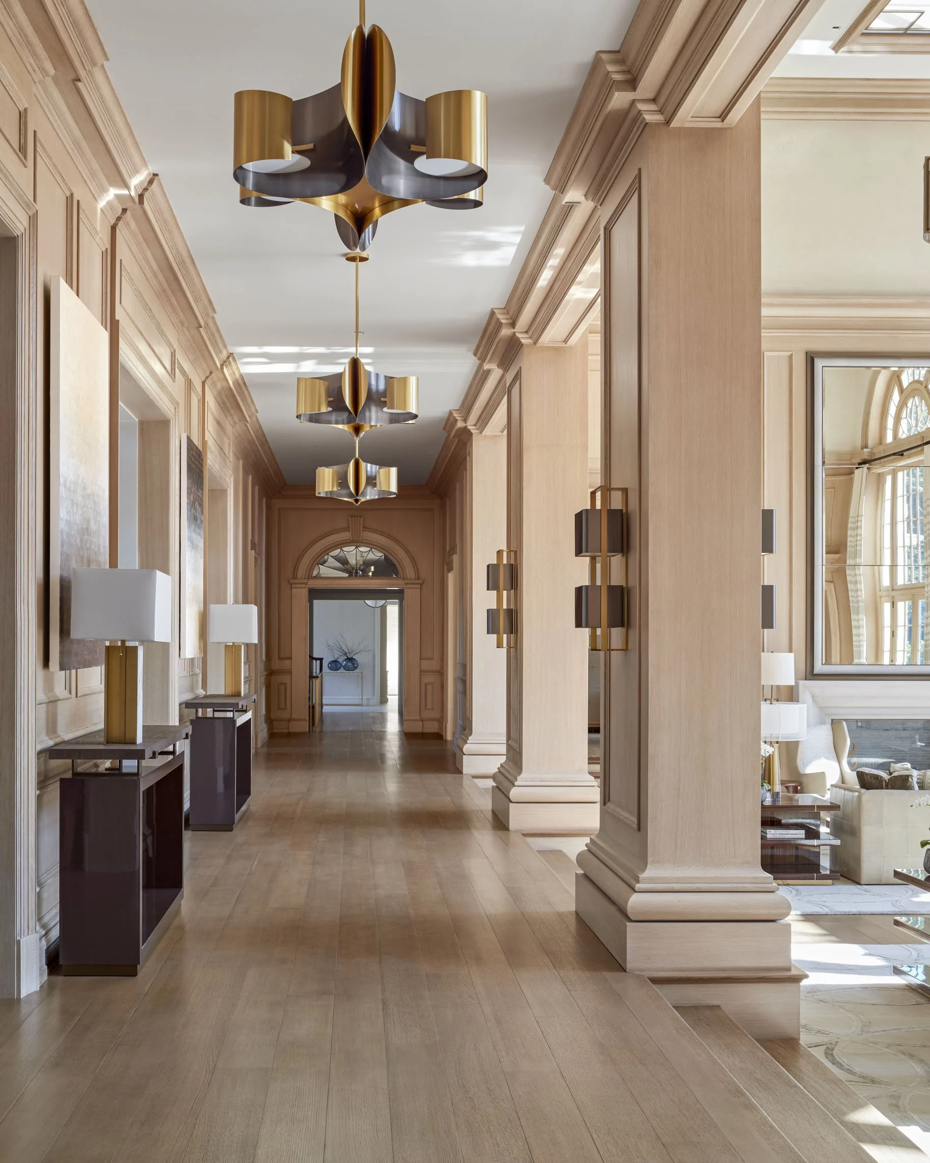8. Chandeliers and Classic Lighting Fixtures: Lighting in Colonial-style homes often includes elegant chandeliers, traditional pendant lighting and sconces supplemented by table and floor lights. These fixtures might feature brass, wrought iron, or crystal to reflect the home’s refined character. Historical candle-style decorative lighting is still common, enhancing the colonial aesthetic with a warm, inviting glow.