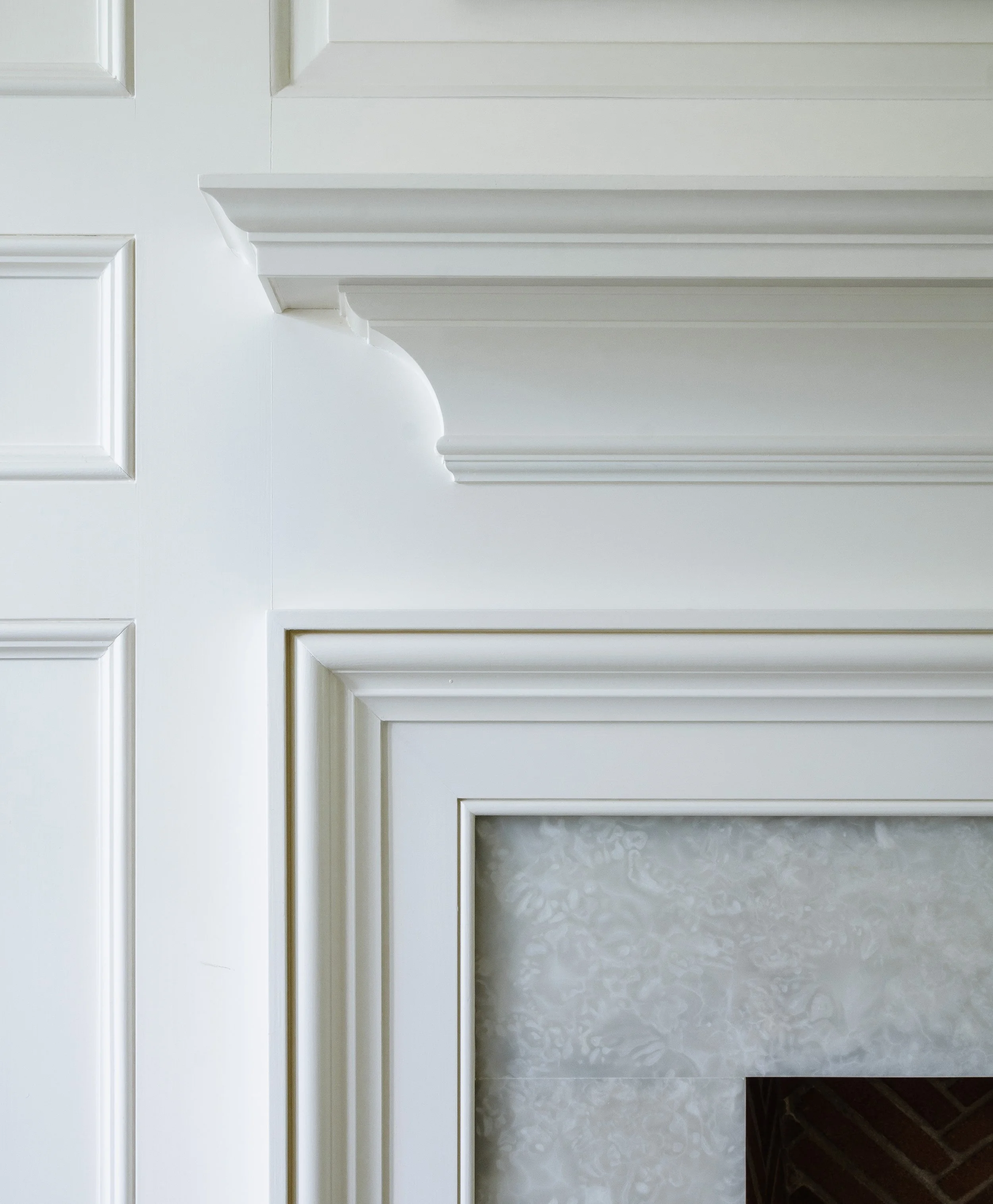 7. Interior Millwork: Many colonial homes feature wood paneling or wainscoting, particularly in formal rooms and high-traffic areas. Originally a readily available, affordable, and durable finish, wood paneling adds texture and warmth to the walls while maintaining the traditional aesthetic. Likewise built-in bookcases or shelving units are often found, particularly in living rooms, studies, or libraries. These features add both functional storage and an element of craftsmanship to the interior, helping to reinforce the home’s refined and formal character.